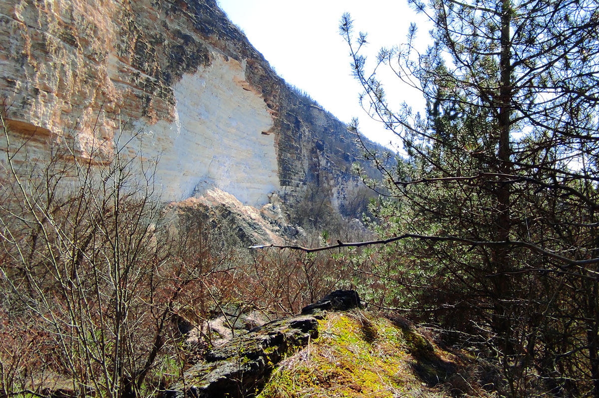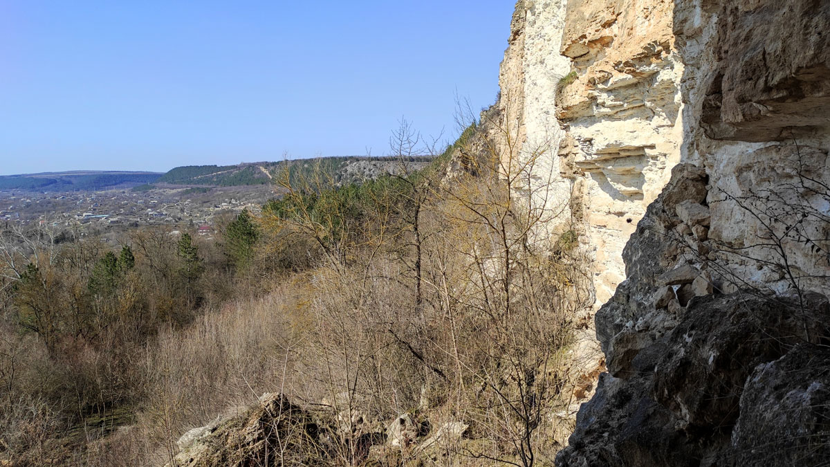 The main feature of the landscape "Deep valley" is a gorge 150–180 meters deep with very steep slopes. The valley seems to meander among the reef outcrops. At every turn, the convex slope of limestones of the Volynian and Bessarabian substages forms bizarre weathering forms. The valley, despite its considerable length, is a typical dry valley, that is, there is no channel in it, and the water coming out from numerous springs is lost.